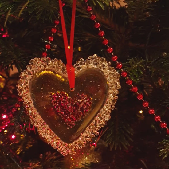 Large gorgeous handmade fused glass heart, can be used as an extra special Christmas decoration or an all-season decor piece, beautiful as a summer suncatcher.